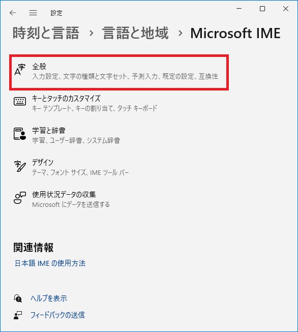 IME設定を開く→[全般] で「JIS X 0208のみ」を選択する